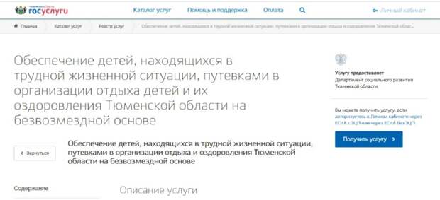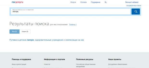 - Сервис выдаст нужный раздел «Предоставление путевок детям в организации отдыха в дневных и загородных лагерях».